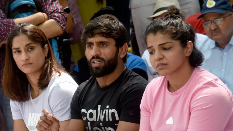 Protest by Sakshi Malik, Bajrang Punia and Vinesh Phogat