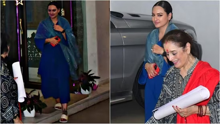 After the ceremony, Sonakshi, dressed in an elegant blue ethnic outfit, stepped out with her mother and posed for the paparazzi. Fashion enthusiasts are eagerly anticipating Sonakshi’s wedding look, speculating whether she will be a red or pastel bride or whether she will wear a saree or a lehenga.