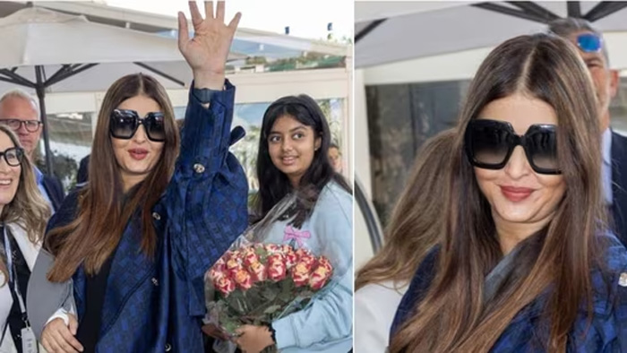 A video of Aishwarya accompanied by Aaradhya getting a grand welcome at Cannes 2024 has surfaced online. In the viral reel Aishwarya had her arm in a sling, with a white cast that was visible around the wrist. She wore a knee-length blue coat teamed with a black outfit and shoes. While Aaradhya paired her light-blue hoodie with black pants and pink shoes. The host is seen presenting the mother-daughter duo with a beautiful bouquet in the viral clip. After being introduced to the former Miss World’s daughter, he gives her a warm hug. The actor thanks him for his hospitality as he bows down to her in respect. Aishwarya also waved at her fans on her arrival.