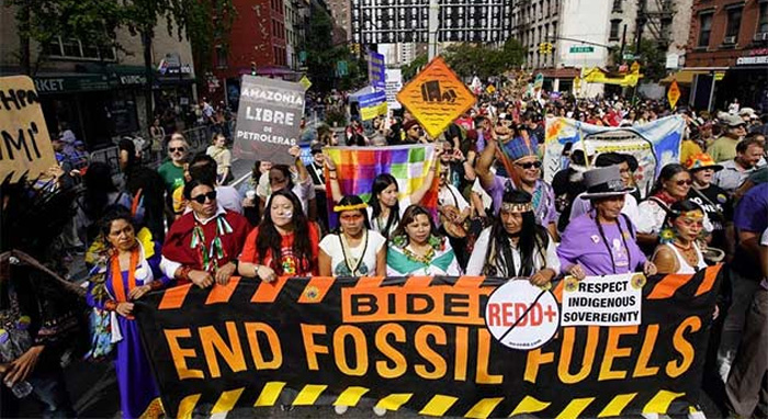 Thousands of protesters kicked off “Climate Week” and filled the streets of Midtown, Manhattan, on Sunday ahead of the UN General Assembly this week, calling for President Joe Biden and world leaders to end fossil fuel use.