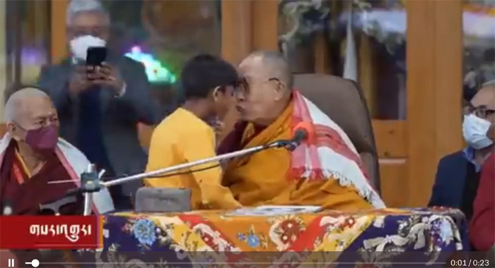 The video, which has gone viral on social media, shows the Dalai Lama planting a kiss on the boy’s lips when he leaned in to pay respect to the spiritual leader.