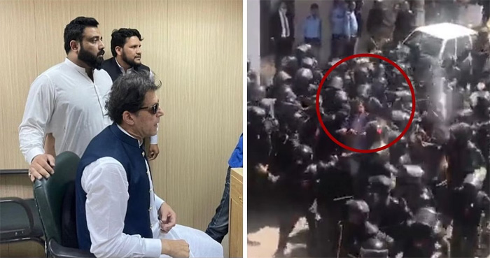 Pak broadcaster GEO TV broadcast images of Khan being taken away and, after that, a scuffle broke out between the ex-PM’s supporters and the police.