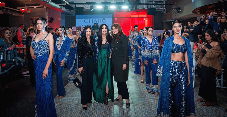 The event highlighted a fashion showcase by one of India’s most eminent designers, Charu Parasher, whose creations stole the spotlight, setting the tone for the evening. Guests were treated to a vibrant atmosphere, complemented by signature cocktails and a tempting array of gourmet snacks curated by the club’s chef. As the evening unfolded, the fashionable crowd mingled, discussed the future of Indian fashion, and enjoyed the stylish ambiance.