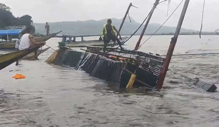 When people rushed to one side of the vessel amid severe winds, the boat tilted and its outrigger broke, then the boat capsized shortly after leaving a wharf in the town of Binangonan for nearby Talim island, police and the coast guard said.