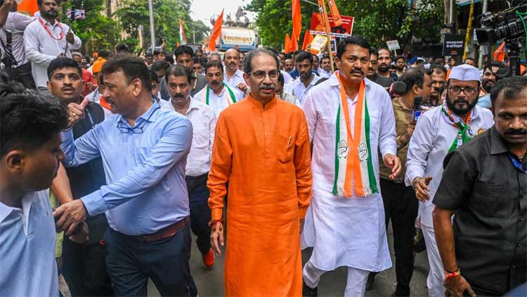 At a joint rally on Saturday, Uddhav Thackeray sparked speculation of a political alliance with cousin Raj Thackeray, saying, “We have come together to stay together,” drawing loud cheers from supporters.