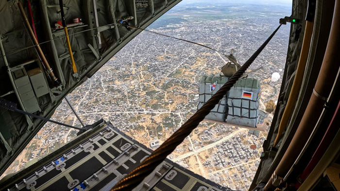 Germany’s air force said it dropped pallets with four tons of relief goods by air into the enclave on Saturday.