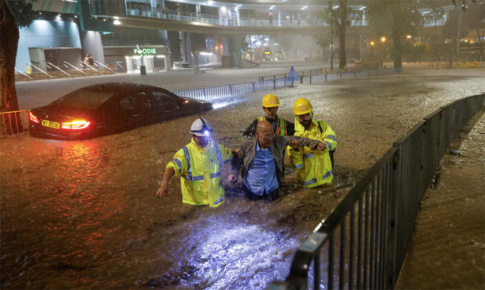City leader John Lee said he was very concerned about the severe flooding in most parts of the territory and had instructed all departments to respond with “all-out efforts.”
