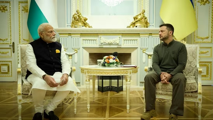 During an interaction with Ukrainian president Volodymyr Zelenskyy in Kyiv, Modi reiterated India’s position that the conflict can be resolved only through dialogue and diplomacy. He added that New Delhi is ready to make proactive contributions towards efforts for peace, Reuters quoted the prime minister as saying.