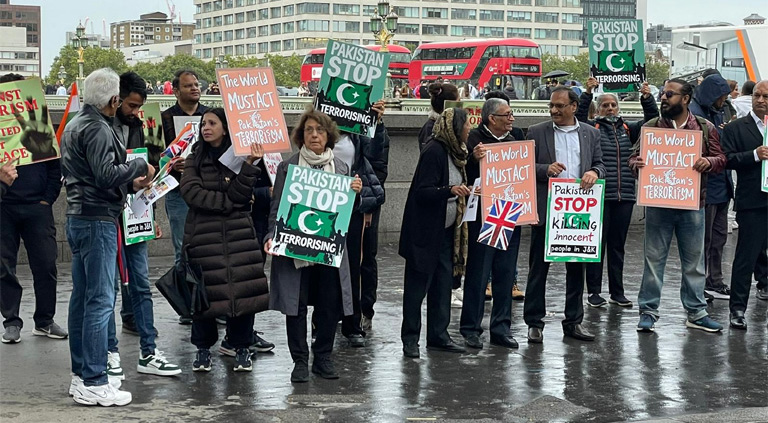 Members of the Jammu and Kashmir diaspora in the UK staged a protest in front of the UK Parliament, condemning Pakistan’s state-sponsored terrorism.