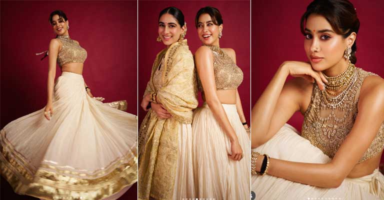 Janhvi Kapoor Stuns in Golden-White Lehenga at Janmashtami Dahi Handi Promotions