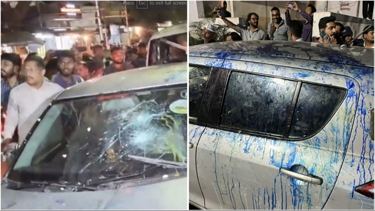 TV visuals showed BJP workers mobbing the car at Khandoji Baba Chowk and vandalising it, resulting in the vehicle’s windscreen and side panes getting damaged. Nikhil Wagle managed to reach the venue of the event under police protection, a police official added.