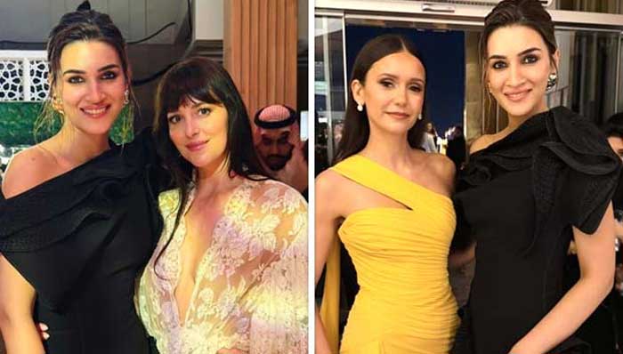 Bollywood actor Kriti Sanon attended the 2025 edition of the Red Sea Film Festival in Jeddah, Saudi Arabia, this week, where she participated as a speaker and was later spotted mingling with several Hollywood stars, including Uma Thurman, Adrien Brody, and Dakota Johnson.