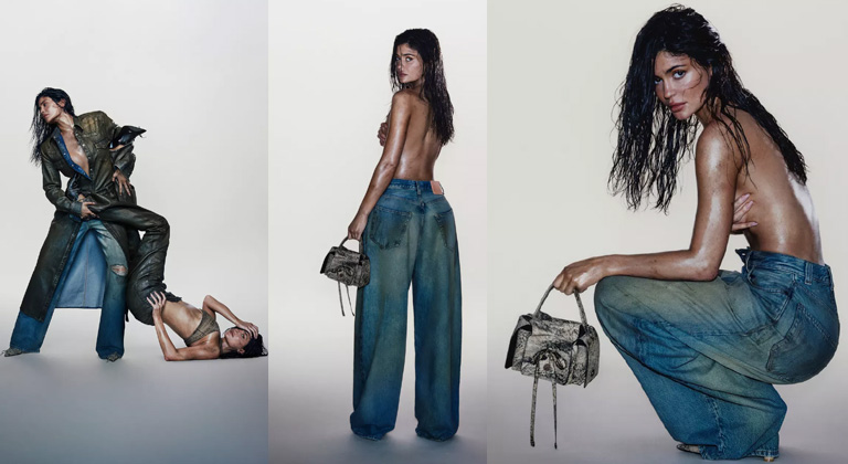Yes, you read that right, the beauty mogul and reality star posed as the brand’s new face in its fall campaign, which involved lots of denim and dirt. In the images, lensed by Dutch photographer and director Carlijn Jacobs, Kylie wears super-baggy low-rise jeans that appear to be covered in grime. At one point. she added a matching distressed denim jacket with nothing layered underneath, while in some shots, she opted for no top at all.