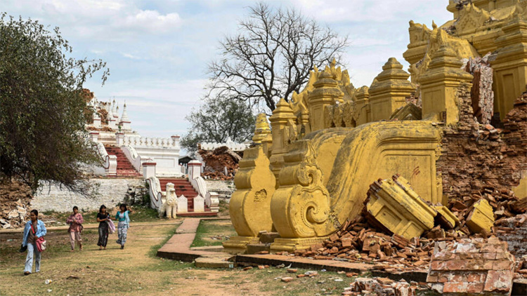 The magnitude-7.7 tremor razed Nagayon Pagoda in the central city of Mandalay, Myanmar’s last royal capital where ancient heritage was decimated in the disaster which claimed more than 3,700 lives.