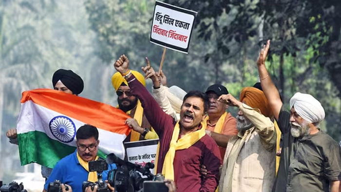 Massive protests outside Canadian embassy in Delhi after Brampton temple attack