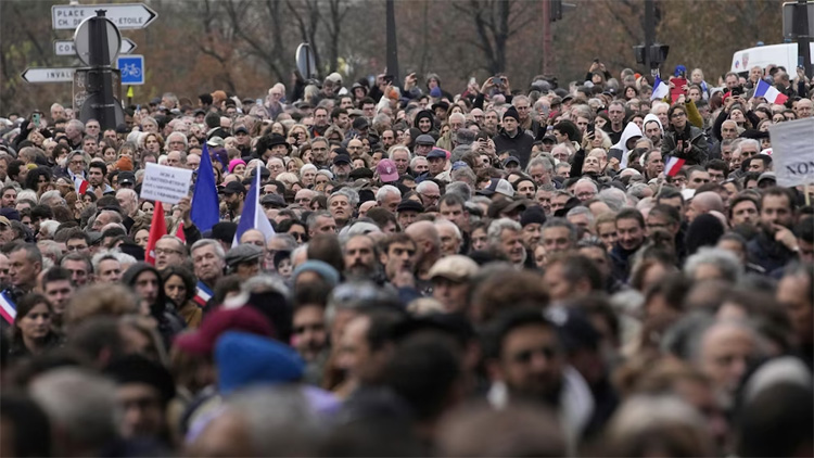 Prime Minister Elisabeth Borne, representatives of several parties on the left, conservatives and centrists of President Emmanuel Macron’s party as well as far-right leader Marine Le Pen attended Sunday’s march in the French capital amid tight security. Macron did not attend, but expressed his support for the protest and called on citizens to rise up against “the unbearable resurgence of unbridled antisemitism.”