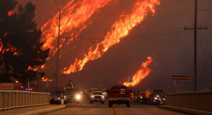 Ferocious flames were devouring hillsides near Castaic Lake, spreading rapidly to cover more than 5,000 acres (2,000 hectares) in just a few hours.
