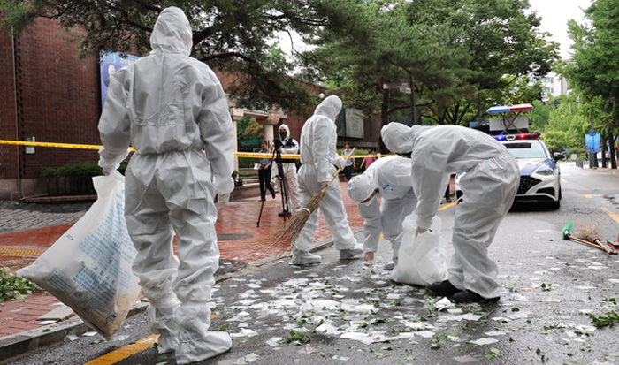 Trash carried by the balloons was identified in the area around the government complex in the Yongsan area, the security service said in a statement.