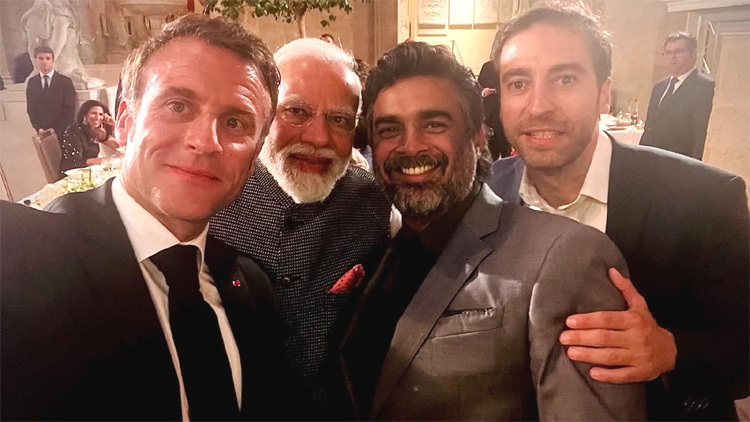 Actor R Madhavan has shared several pictures as he posed with Prime Minister Narendra Modi and French President Emmanuel Macron.