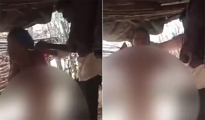 In the disturbing video, a man is seen stripping the woman in front of other people and then parading her naked in a village.