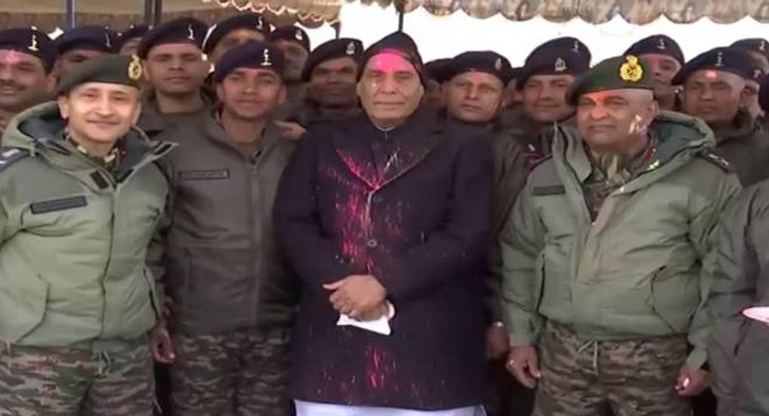 रक्षा मंत्री राजनाथ सिंह ने लेह में जवानों संग मनाई होली, बॉर्डर पर खूब उड़े गुलाल