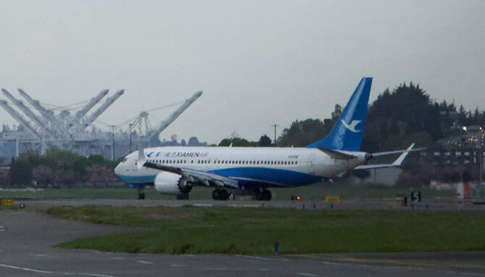On Sunday a 737 MAX painted with the livery for China’s Xiamen Airlines made the return journey from Zhoushan and landed at Seattle’s Boeing Field.