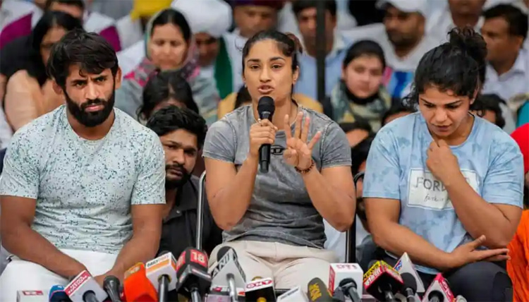 A purported video from the protest site showed a man raising anti-Modi slogans on a mic at the protest venue. Star wrestler Vinesh Phogat distanced herself from the slogans and sought to placate the people in positions of power.