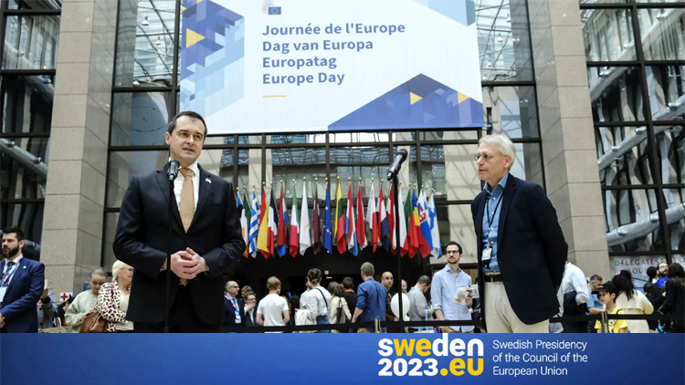 In connection with Europe Day, the EU institutions in Brussels open their doors to visitors. This year, the Swedish Presidency invited Ukraine to share its Presidency stand, and the Swedish and Ukrainian ambassadors held a joint welcome address in the Council’s building.