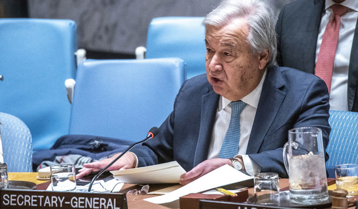Without naming Putin, Guterres said, “Nuclear saber-rattling must stop.”