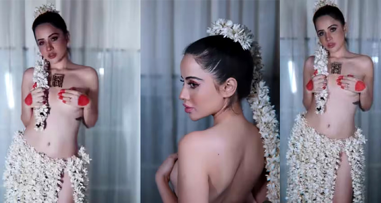Known for her bizarre fashion sense, Urfi Javed recently went topless as she dropped a video wherein she covered her modesty with her hands and donned a thigh-high slit skirt made of gajras.