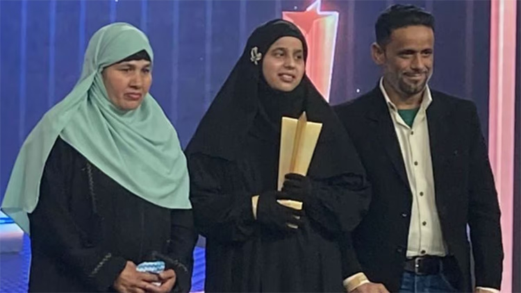 Beginning her acceptance speech with Urdu shayari, she first thanked her parents for educating her despite belonging to a place where there is no school education beyond Class VIII.